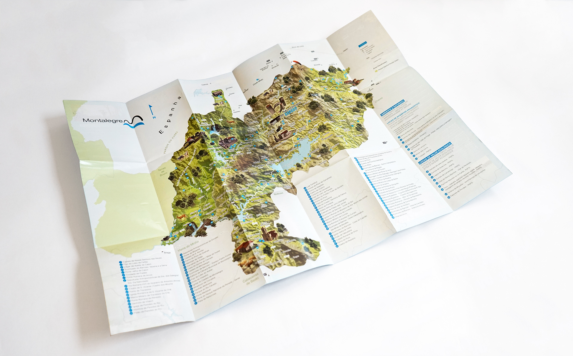 Ou um mapa que evidencia o relevo do território e os recurso de Natureza e Património, tal como acontece com o Mapa de Montalegre: