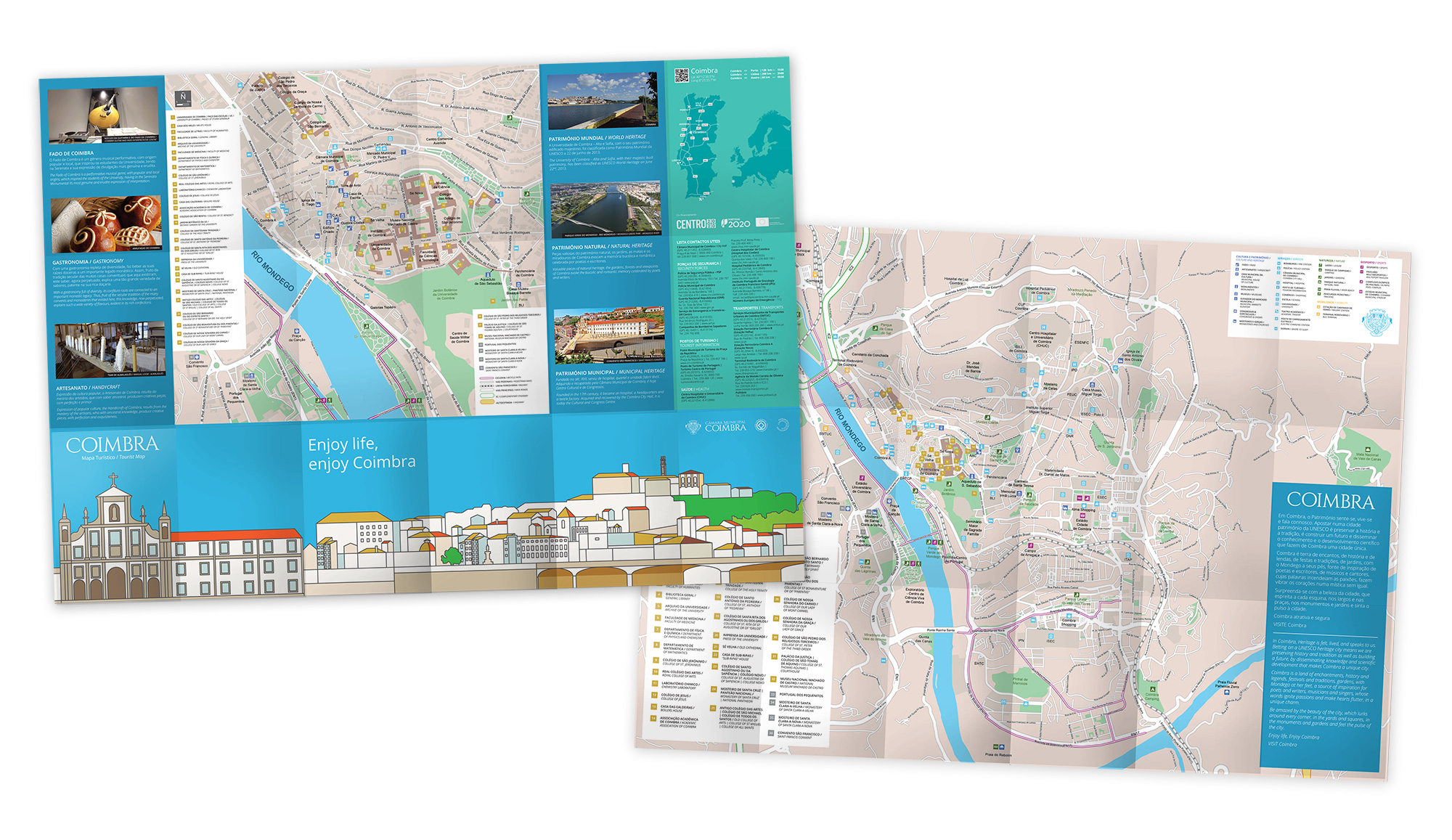 O Mapa de Coimbra é um excelente exemplo de centro histórico com destaque para os monumentos que integram o Património UNESCO: