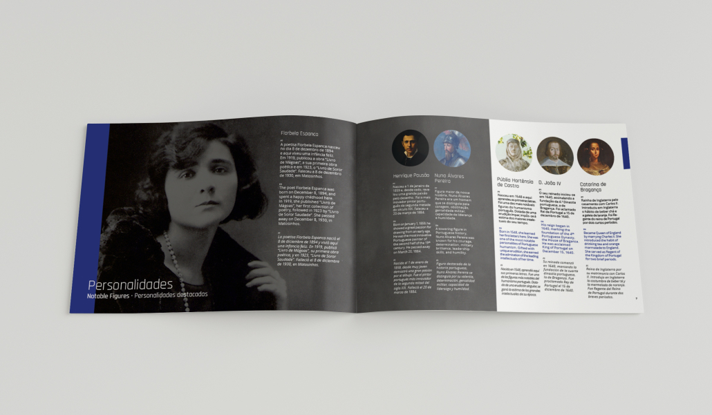 A brochura destaca-se pela sua estética contemporânea e clareza na apresentação dos conteúdos, aliando um Design contemporâneo e minimalista, com a identidade visual do município. Para além do design e paginação, a InfoPortugal assegurou a produção cartográfica de dois mapas, a tradução dos textos e a impressão da brochura.