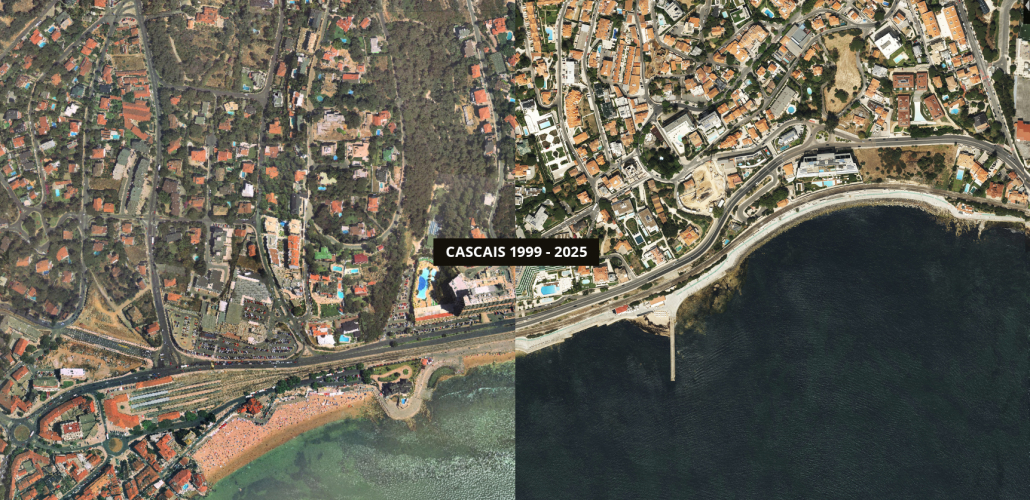Fontes do Geolapse: Portal Geo Cascais | Ortofotomapas 2020, 2021 e 2025 produzidos por InfoPortugal.